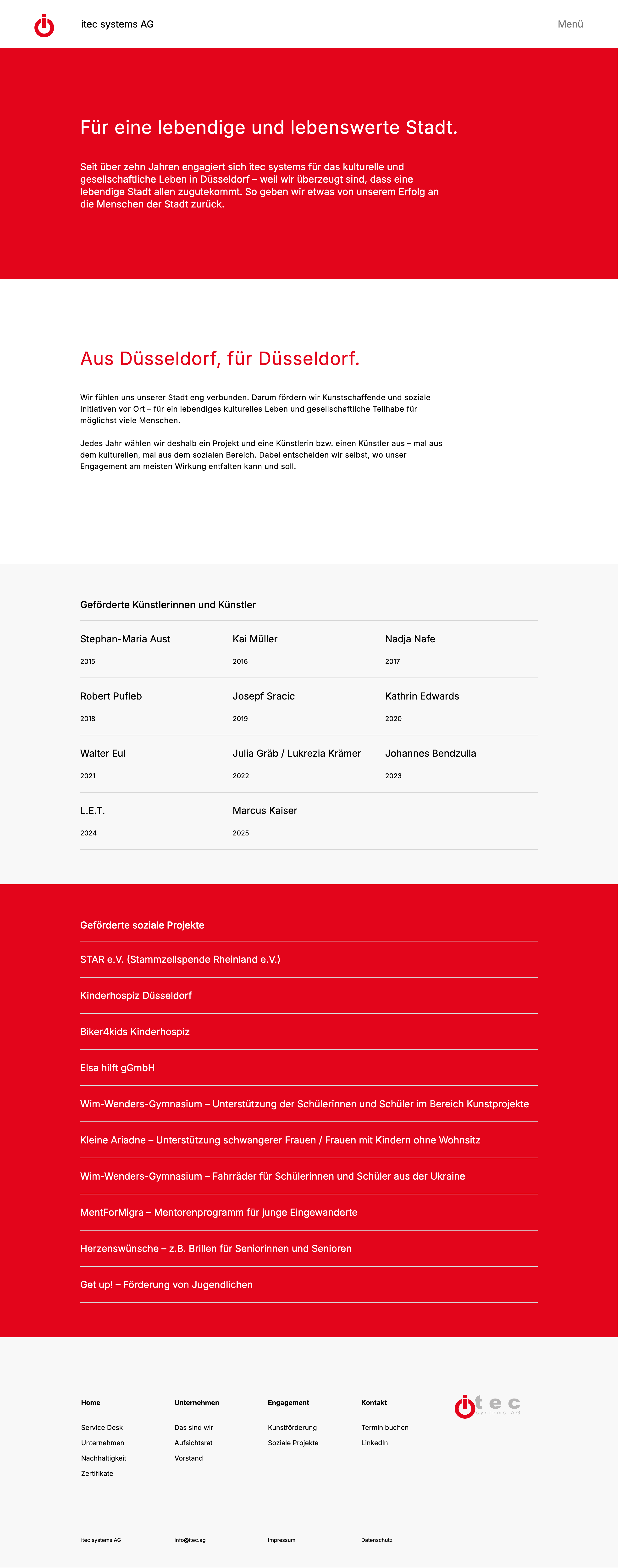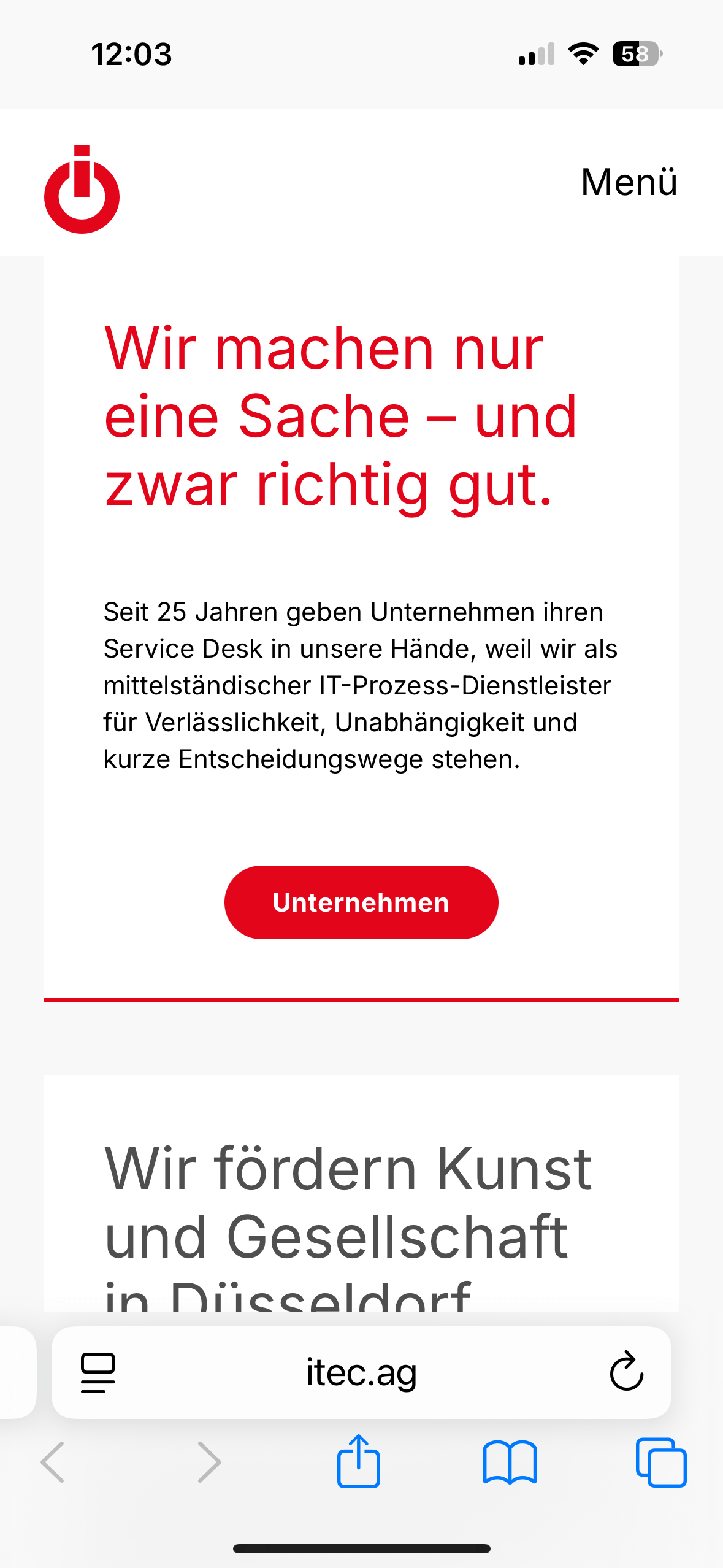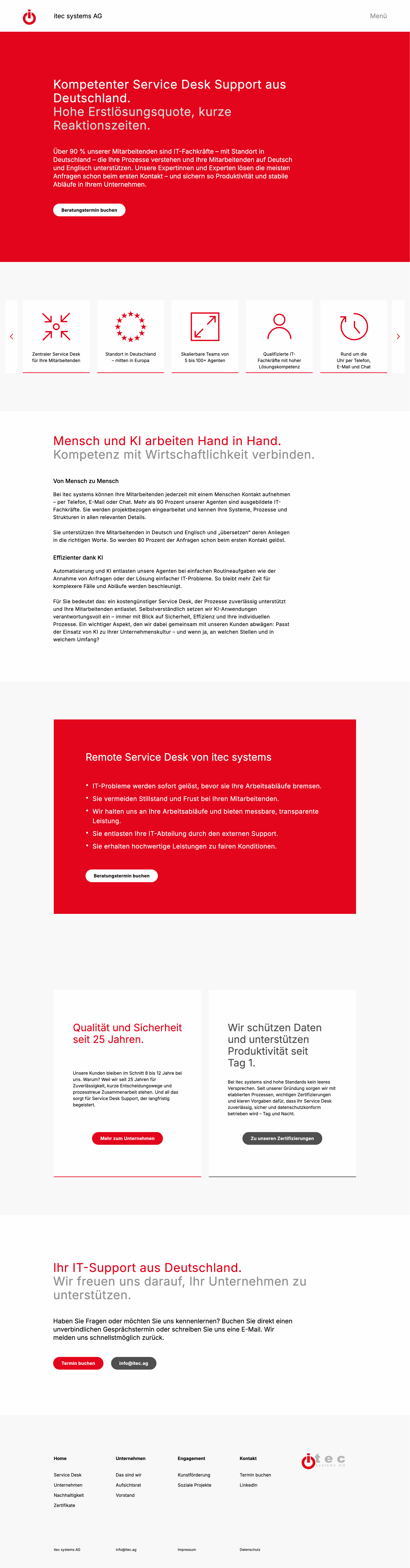 The Düsseldorf-based itec systems AG focuses exclusively on professional service desk support, helping companies run their IT processes smoothly and user-friendly. Open Studio created the concept, the visual design and overall website structure – from the homepage layout to the navigation look & feel. Building on this, we developed the structure of all subpages and wrote the website copy, highlighting itec systems as a fast, reliable and 24/7 service partner.