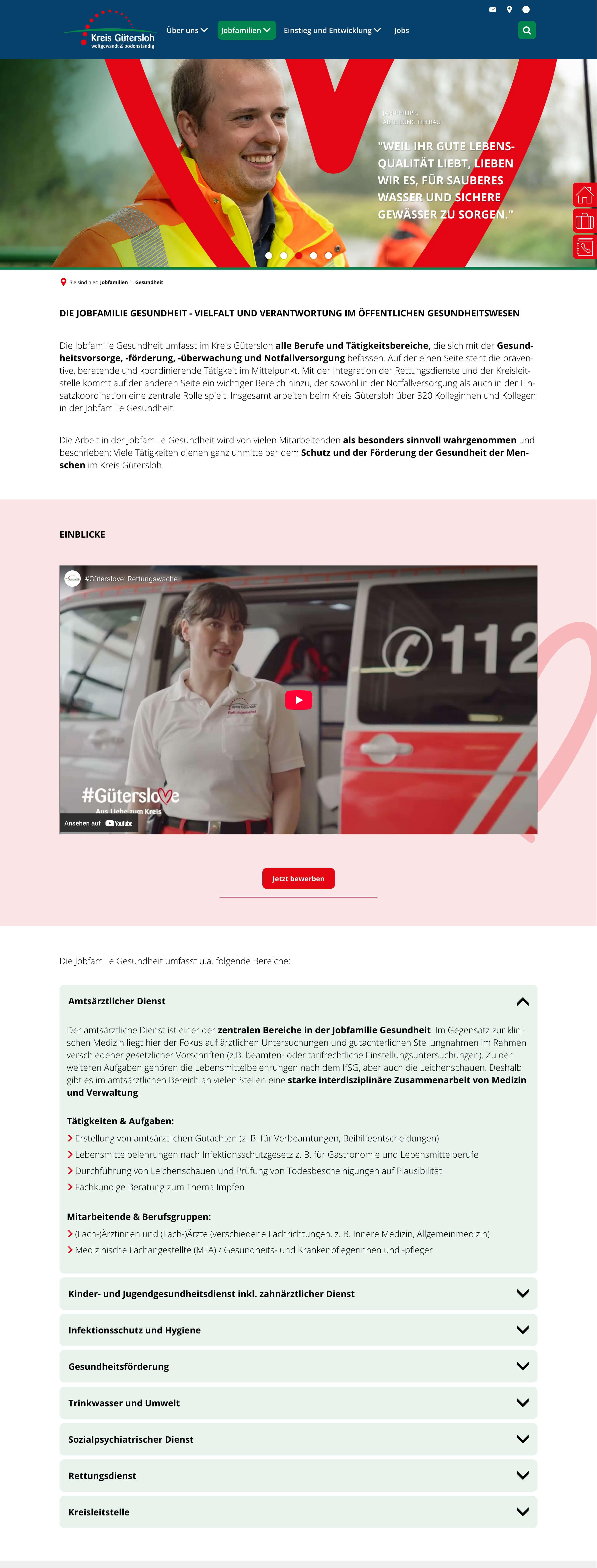 With its employer brand #Güterslove – Aus Liebe zum Kreis, the District of Gütersloh shows what modern public service can—and should—look like today: community-driven, appreciative, and reliable, with a clear ambition to actively shape the region. Building on this, we developed the structure and copy for the new careers website and job postings, consistently carrying these values through and inspiring potential candidates to join.